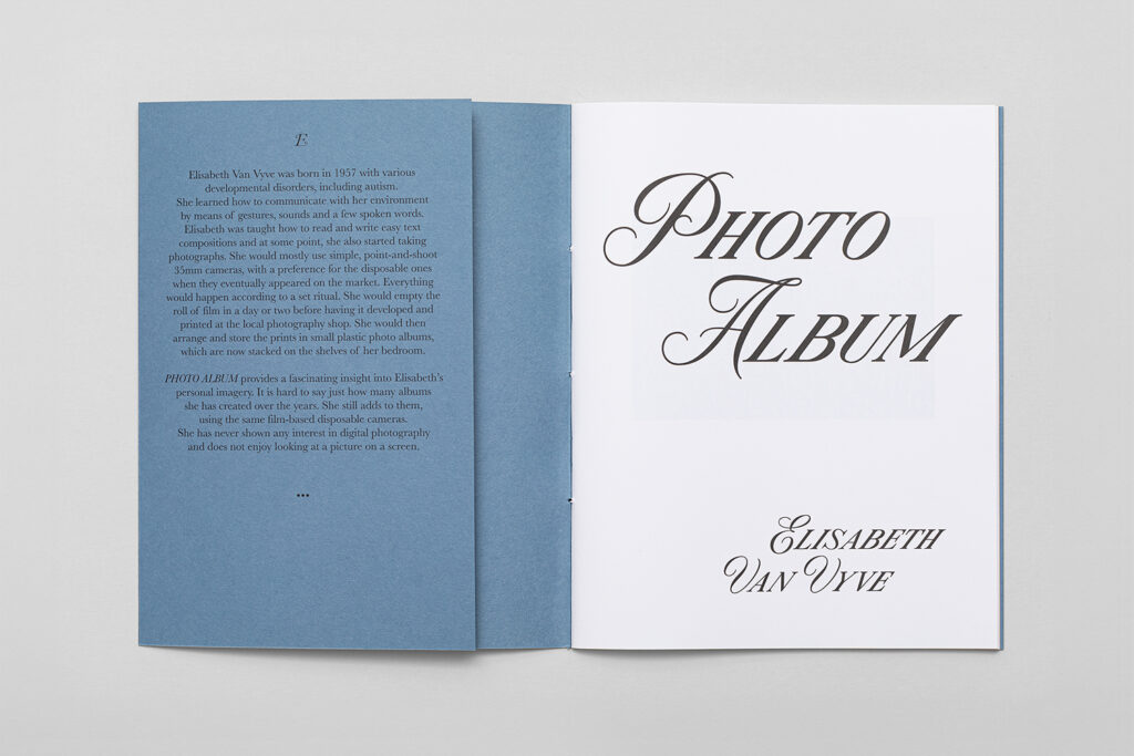 Photo Album provides a fascinating insight into Elisabeth’s personal imagery. It is hard to say just how many albums she has created over the years. She still adds to them, using the same film-based disposable cameras. She has never shown any interest in digital photography and does not enjoy looking at a picture on a screen. At first glance, her snapshots are like anyone else’s, featuring family and friends, cherished pets, birthday celebrations or a decorative bouquet of flowers.
